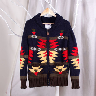 日系复古民族风毛衣日单男士青果领开衫外套男装线衣衣服