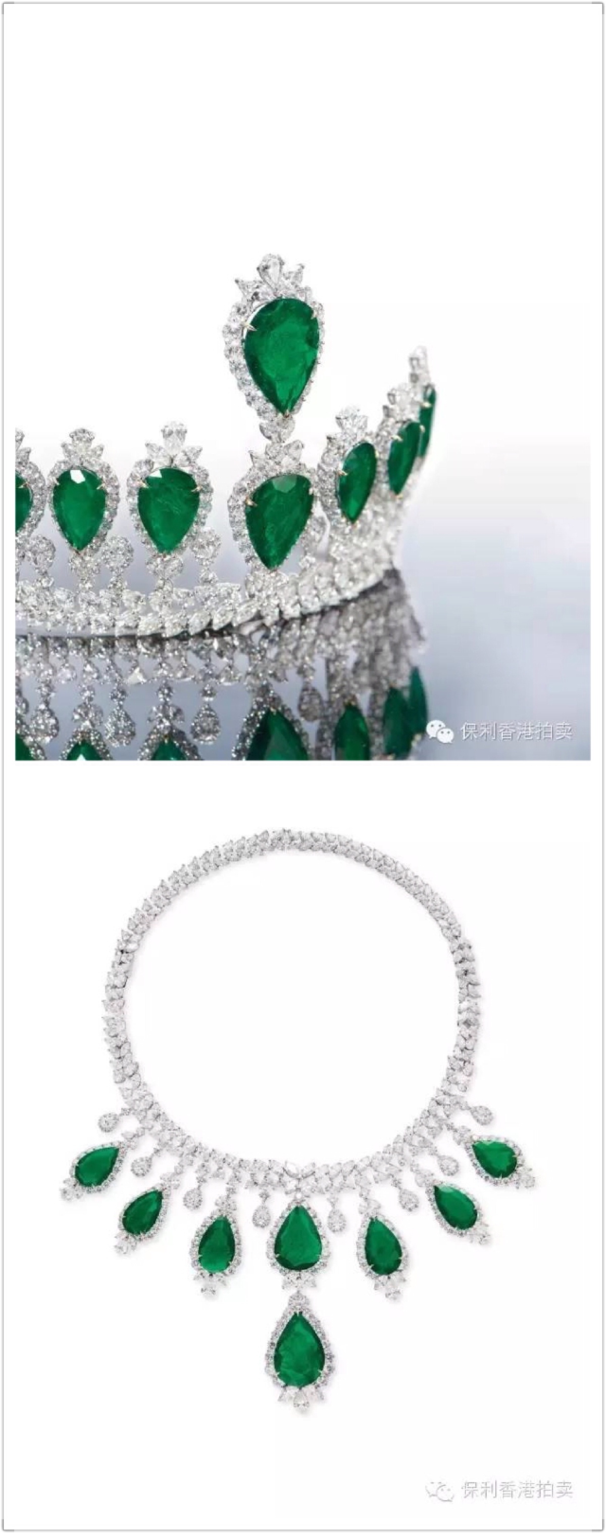 重約77.63克拉的哥倫比亞祖母綠配鑽石皇冠,可拆卸為項鏈