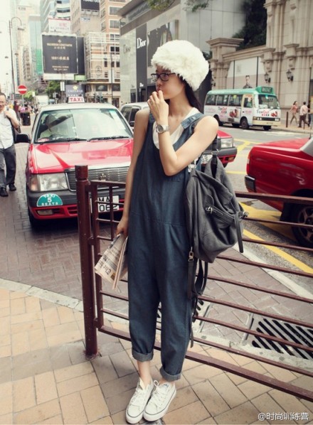 牛仔背带裤~配上简单的T恤