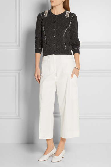 这款裙裤采用挺括的纯棉斜纹布裁剪而成,呈现出纯净无暇的白色调。高腰款式十分修身,正面的压痕细节则具有拉长身形的视觉作用。建议搭配女衫与本季大热的“奶奶鞋”。