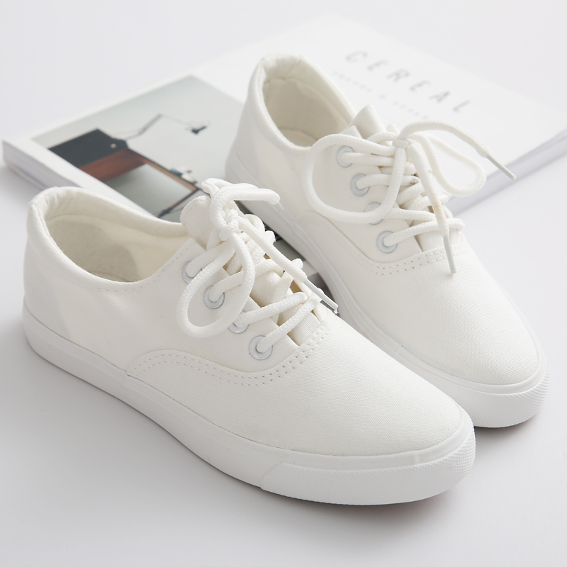 韩版休闲鞋小白鞋女韩国系带帆布鞋平底鞋文艺百搭学生小清新舒适