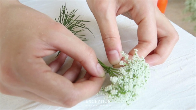 最后我们还可以将雪白色的蕾丝花捆成一小束,作为点缀!