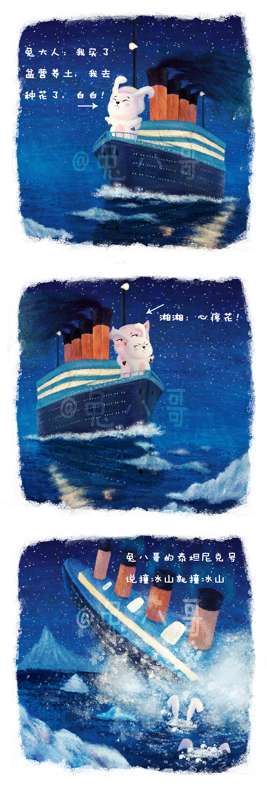 友谊的小船说翻就翻,兔八哥的泰坦尼克号说撞冰山就撞冰山,阿门!我们三个蛇精病人的日常^.^