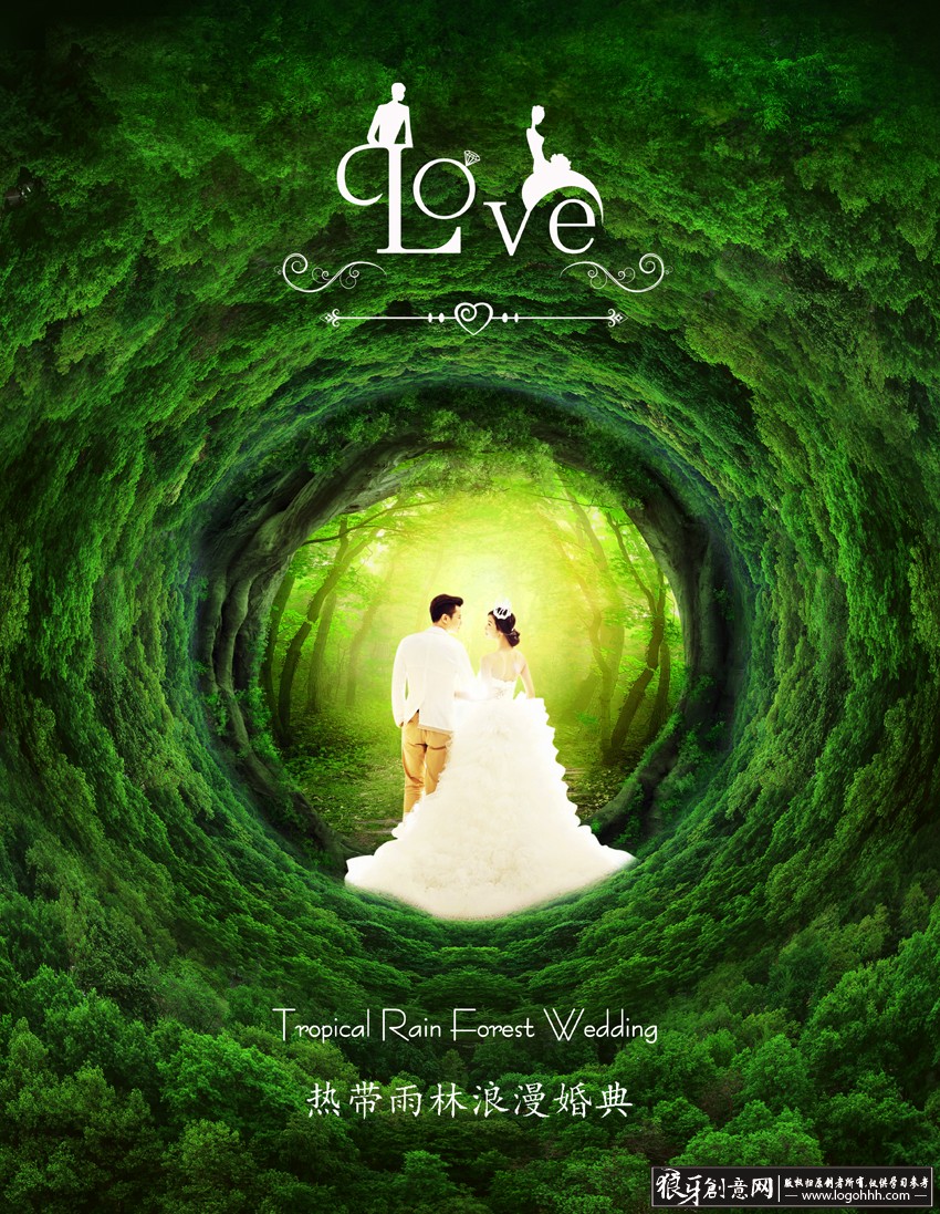 热带雨林背景PSD丛林背景 浪漫婚礼背景,婚礼,绿色森林背景,情侣LOVE,树洞神秘背景素材