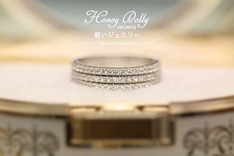 【桃栗】百搭叠带圣品系列 经典小排钻白金色 925纯银 戒指 尾戒
