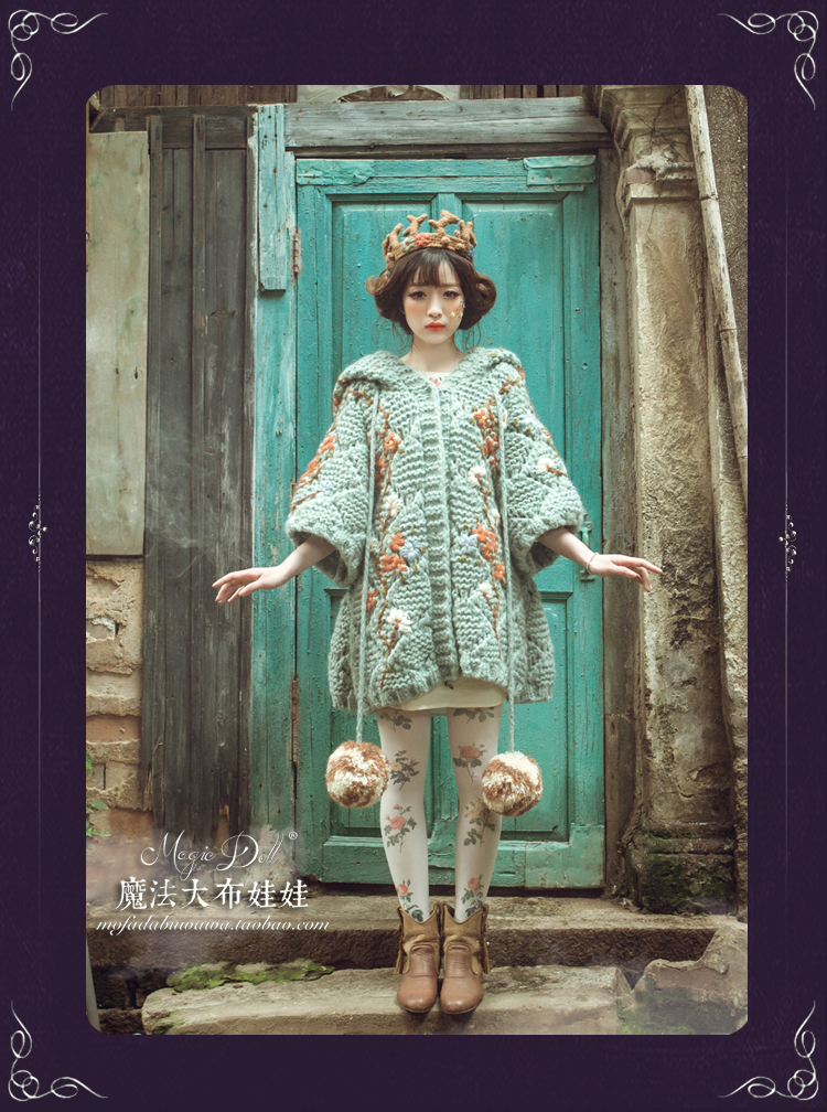 魔法大布娃娃2015春季甜美宽松大码刺绣小熊耳朵可爱针织外套毛衣