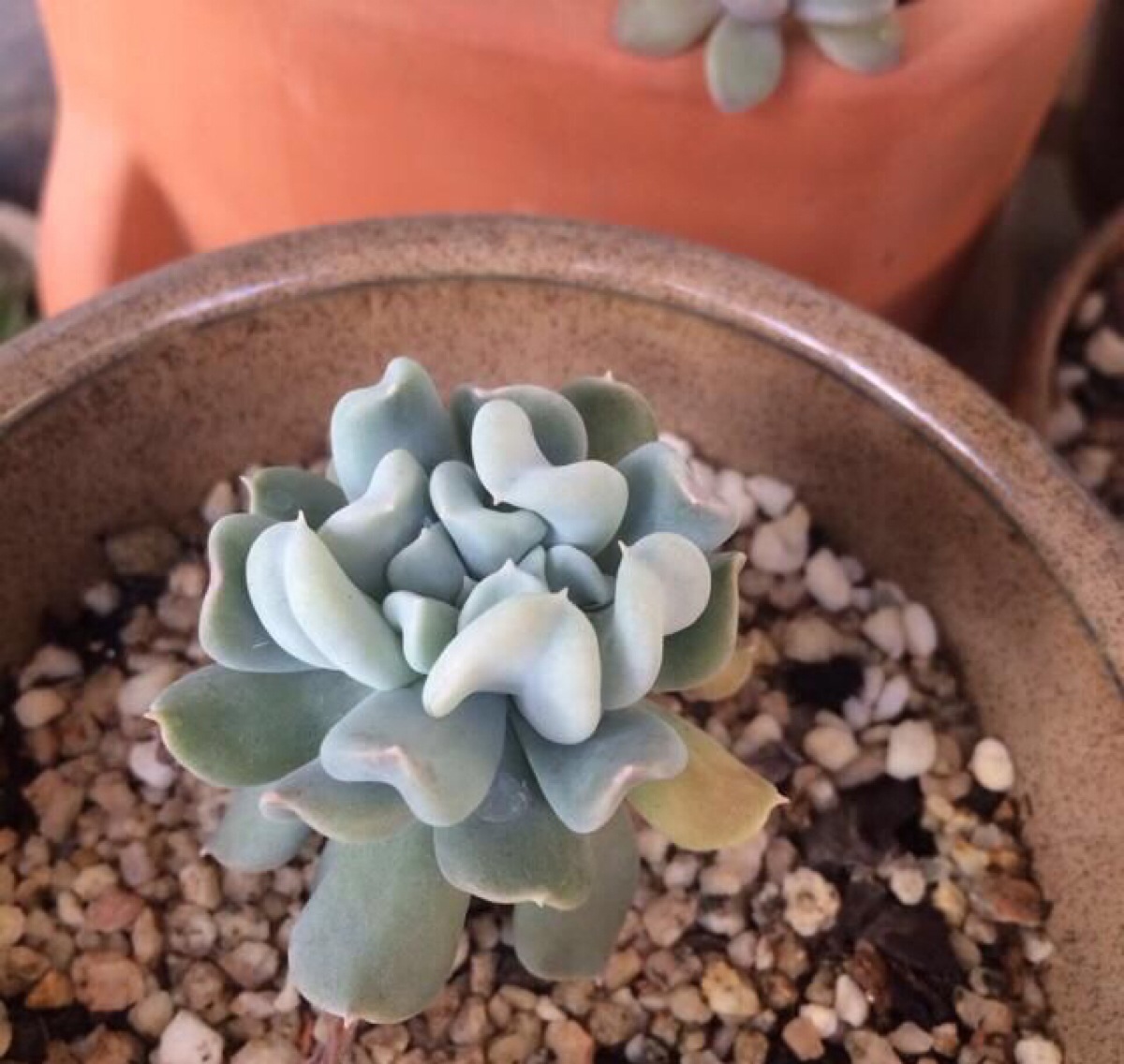 奥普琳娜 有薄粉哦 出状态的时候粉蓝粉蓝的。【微信公众号:多肉植物的坑】