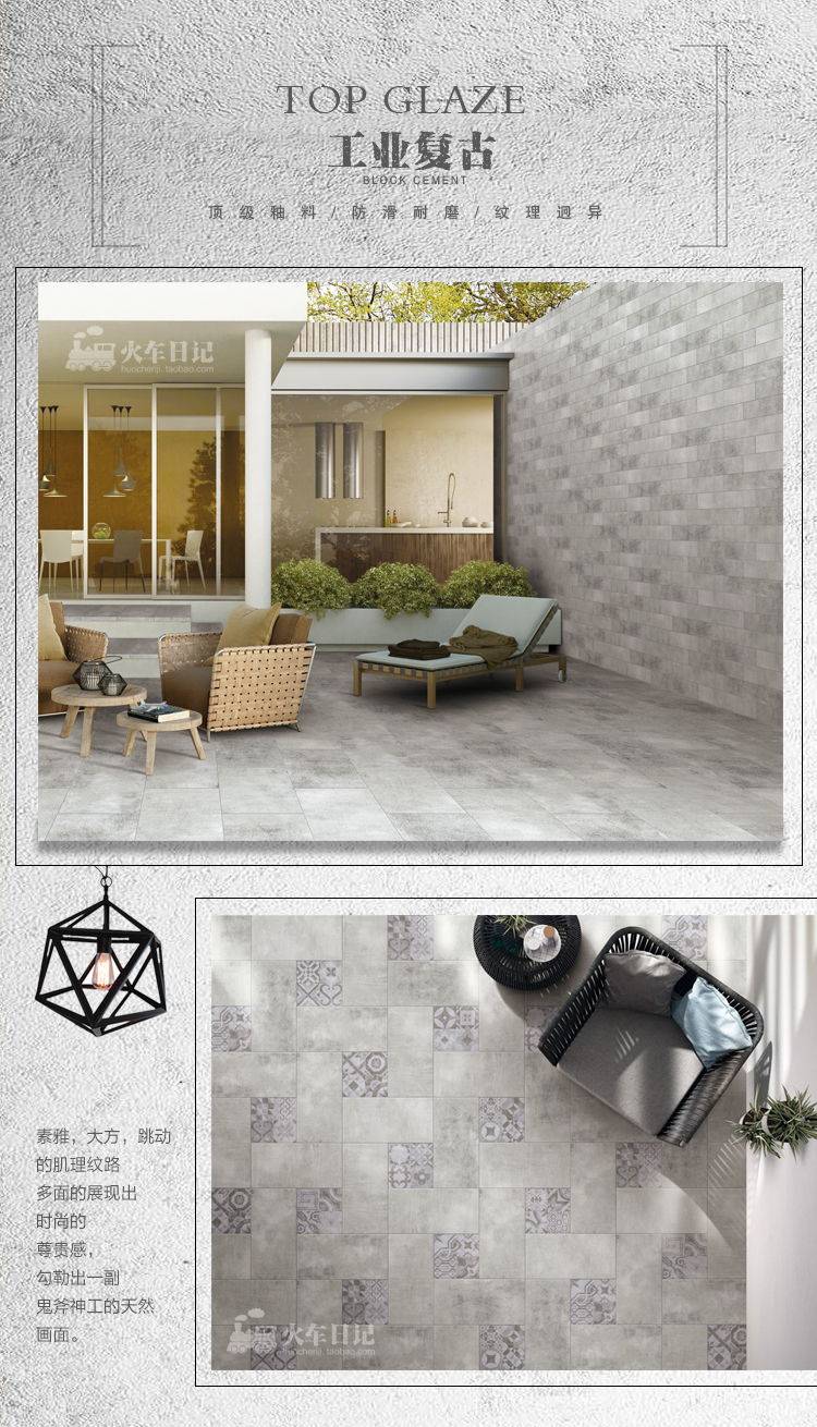 水泥砖仿古砖防滑地砖灰色瓷砖工业风背景墙砖厨房阳台卫生间