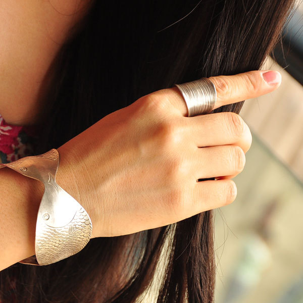 凡花一墨岁月留痕复古纹理老银泰银纯银手工银男女款指环戒指