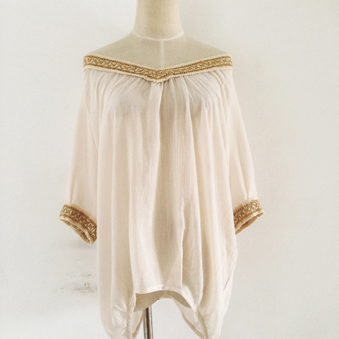 古着vintage复古 棉麻双v领编织钩花蝙蝠袖宽松上衣百搭显瘦罩衫