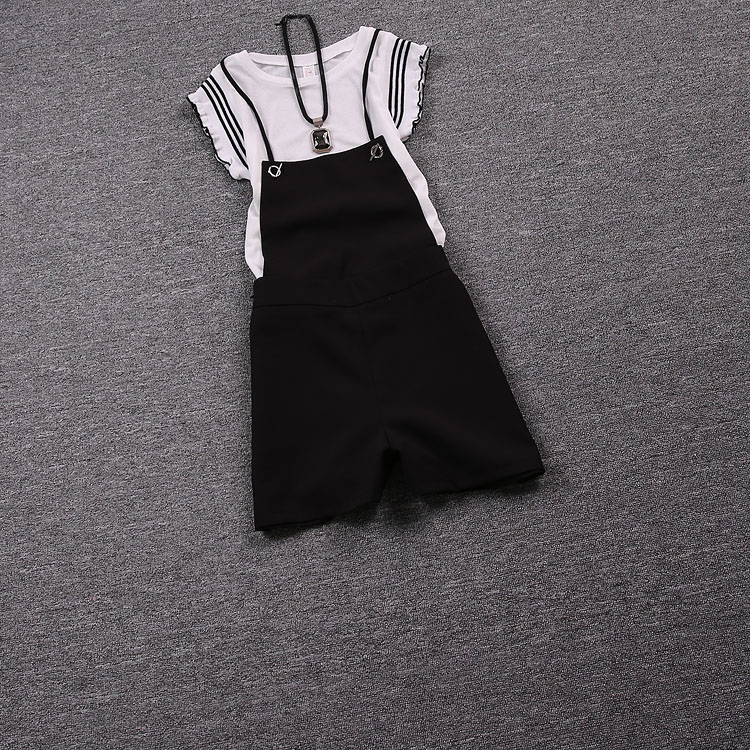 欧洲站2016夏装新款名媛女装阔腿背带裤两件套夏季短裤套装欧货潮