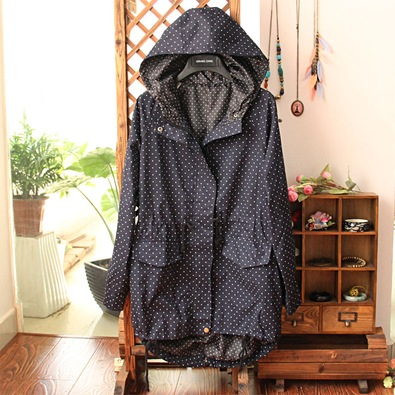 韩版清新森女森林系波点圆点连帽前短后长风衣外套