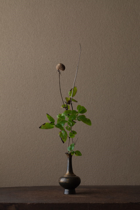 川瀨敏郎(Kawase Toshiro)插花艺术:-----是“自然野趣流”的代表人物,他喜欢用一些古老、质朴、布满历史痕迹的器皿当做花器,依据时节到山野里找最当令的花叶,融入花器中。