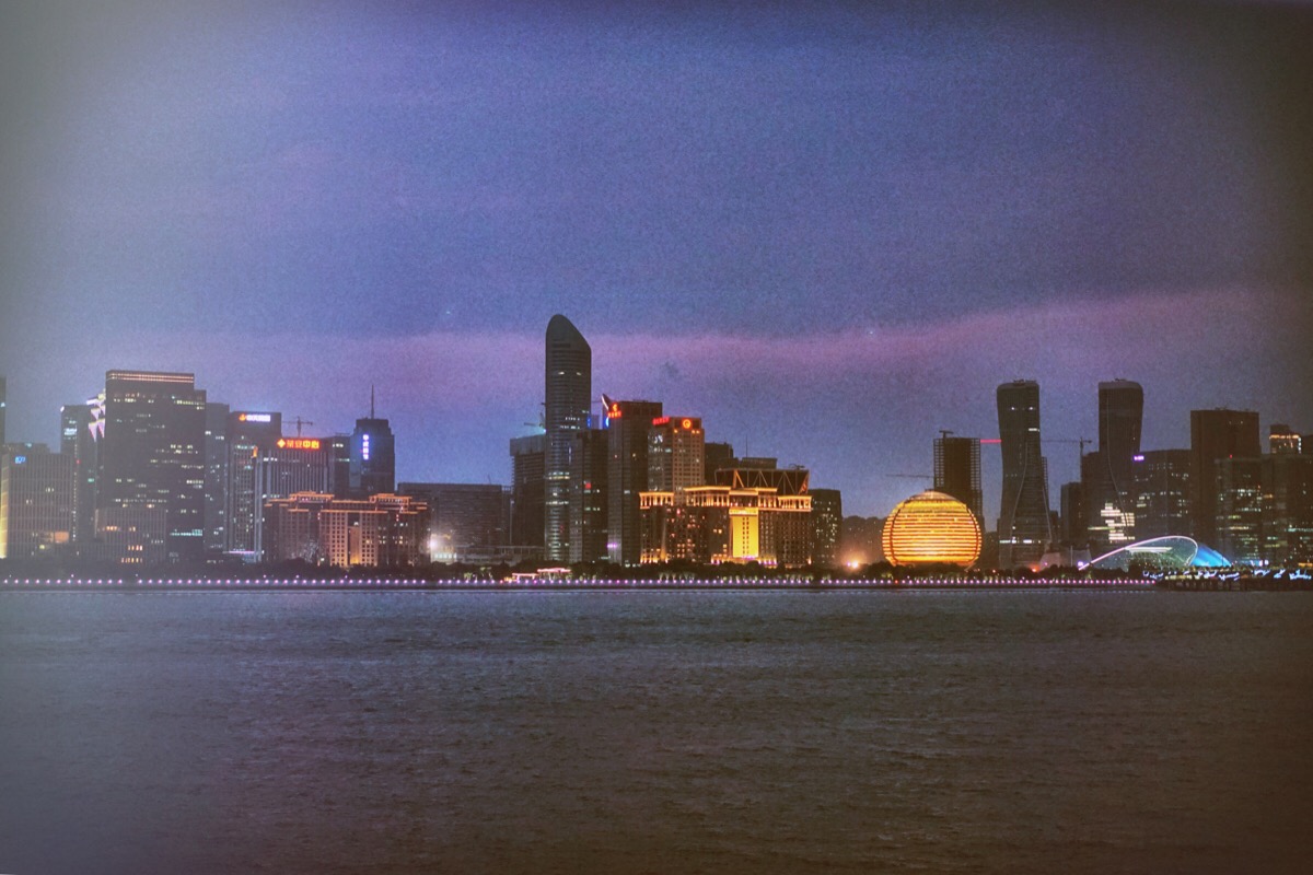 夜晚灯光下的银杏