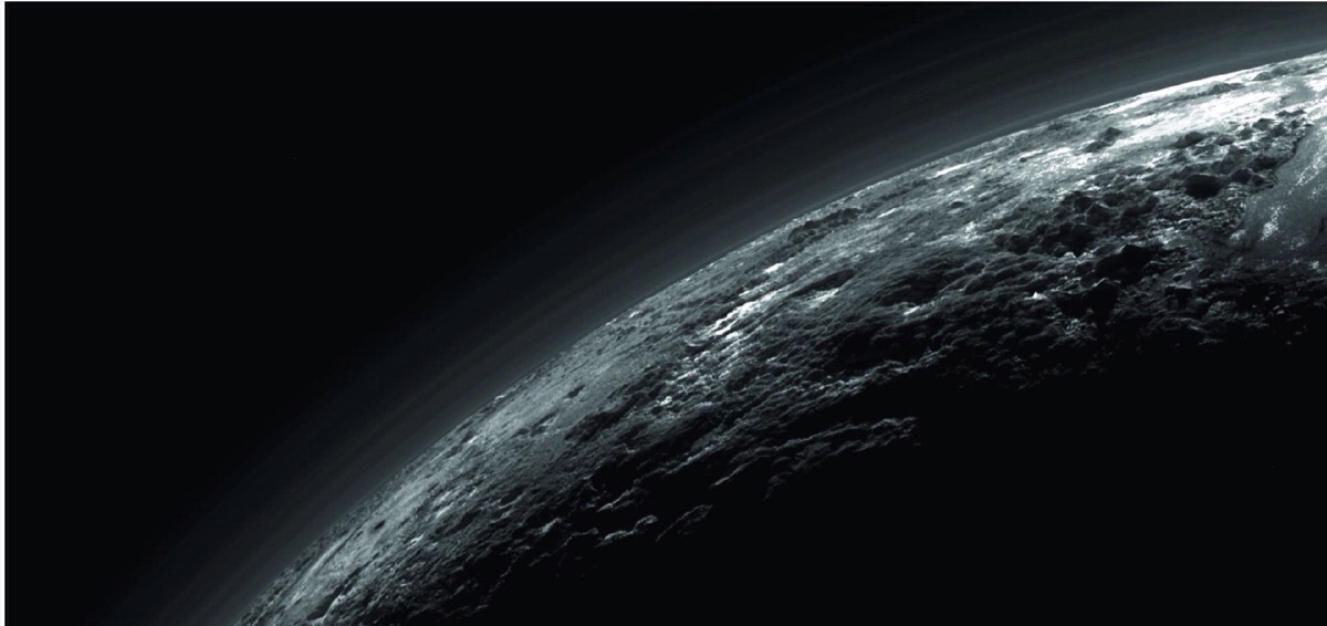 冥王星上空的霾层,NASA估计约有20层(小编没数到那么多,大家来帮帮忙!),水平绵延数百公里,但并没有严格意义上的那种平行环绕分布,由新视野号上的拉尔夫(Ralph)/多谱段可见光成像相机(MVIC)拍摄,目前新视野号号探测器飞掠冥王星时获取的数据,半数已传回地球,剩余的预计在2016年底可全部传回。