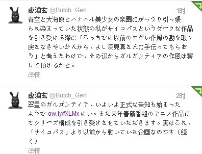 去年,西尾维新和新房昭之就谋划要将「全物语」系列动画化,根据「全物语」系列官网上的介绍,继「猫物语(黑)」之后,将在2013年动画化的还有「猫物语(白)」、「花物语」、「囮物语」、「鬼物语」、「恋物语」、「倾物语」!不知新房是否可以在2013年年内完成,首先要把「伤物语」捣鼓出来再说吧?