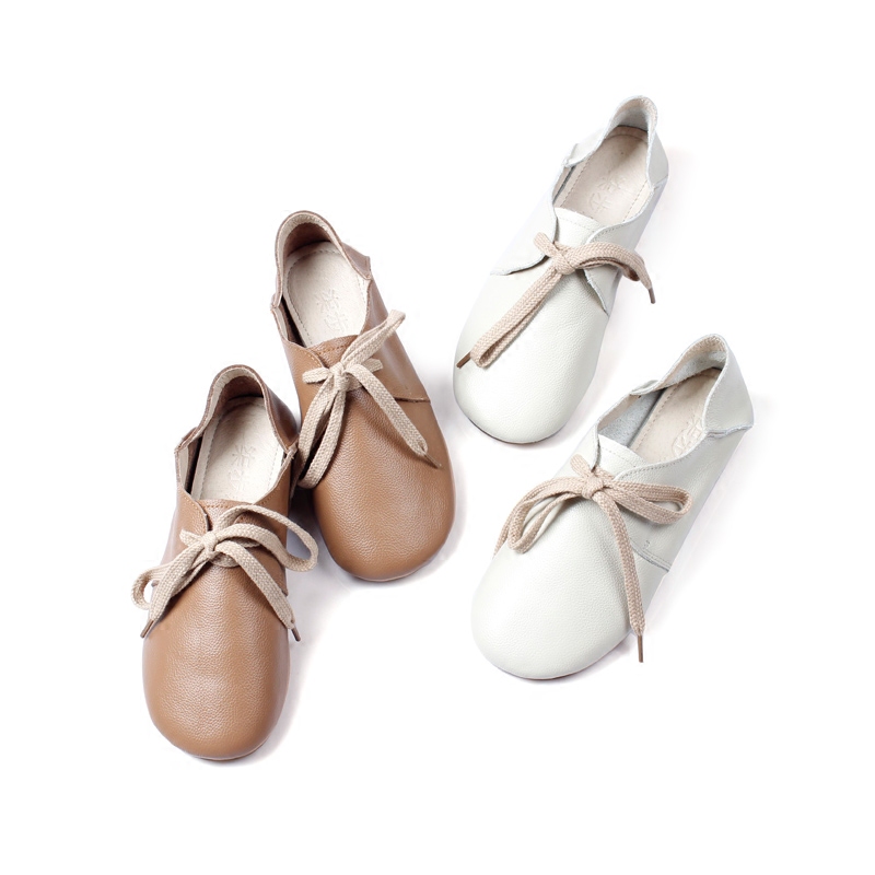 柒步森|搁浅绽放|秋季文艺复古擦色牛皮系带平底手工女单鞋子