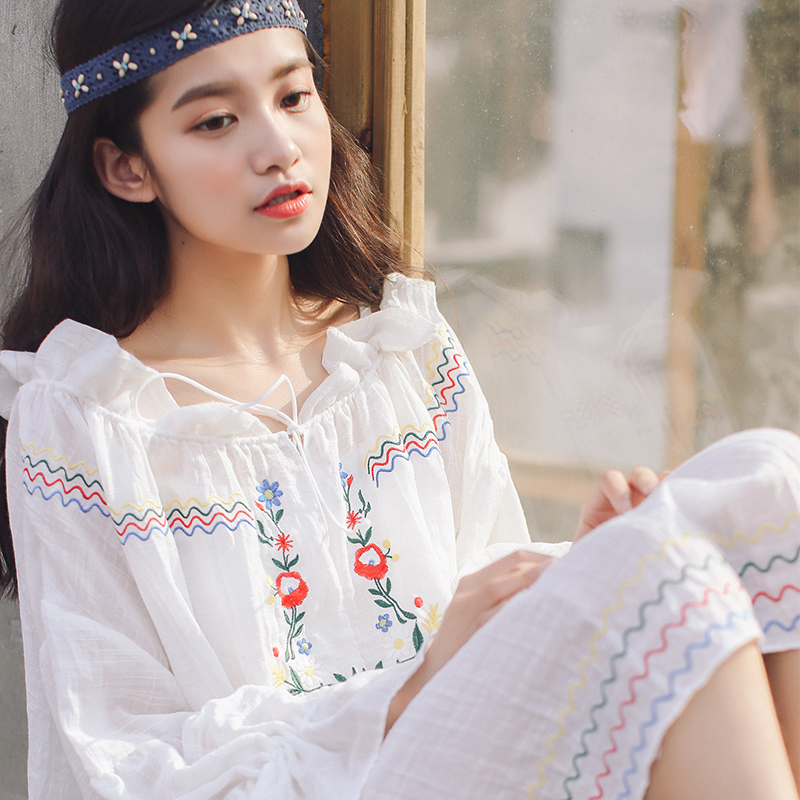 mimius2016夏新款波西米亚度假刺绣民族风宽松两件套连衣裙M5891