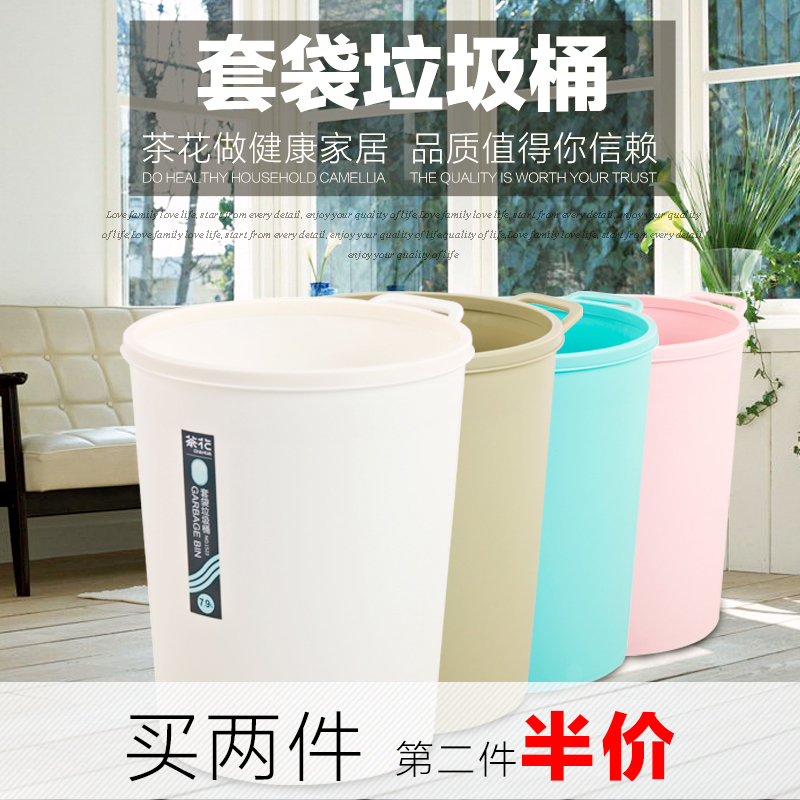 茶花创意垃圾桶家用塑料厨房卫生间大号无盖垃圾筒客厅塑料纸篓