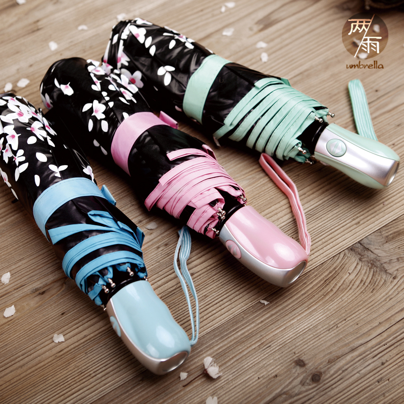 全自动太阳伞防晒防紫外线自开自收折叠女黑胶遮阳伞创意樱花伞