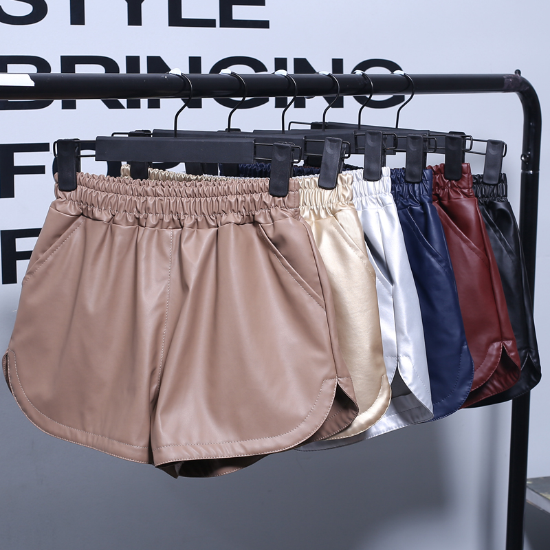 2016秋冬新款时尚pu皮裤宽松黑色韩版松紧腰阔腿皮短裤女百搭外穿