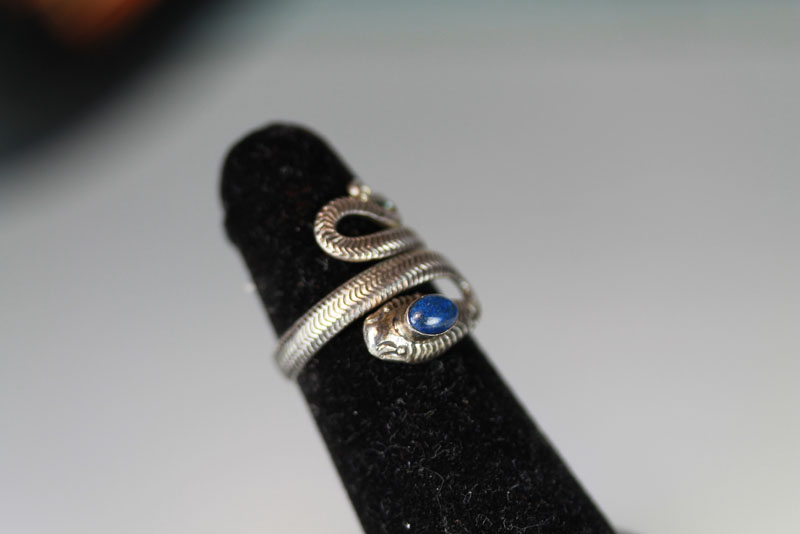 强力推荐:純银天然青金石立体精雕蛇戒指