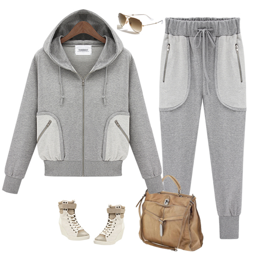 运动、休闲又时尚,欧美连帽卫衣套装~