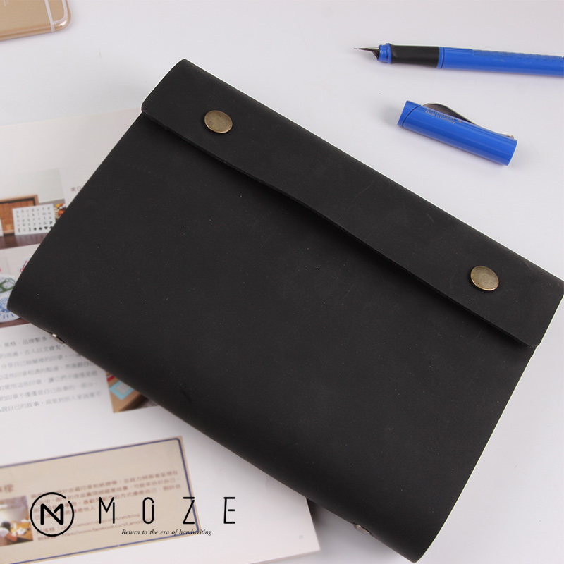 MOZE 高端商务黑色真皮活页本牛皮记事本笔记本文具a5复古日记本