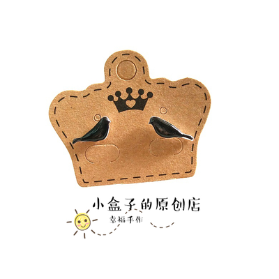 耳钉 女 热缩片耳钉 diy复古文艺小鸟耳钉 热缩片 手绘原创 纯银