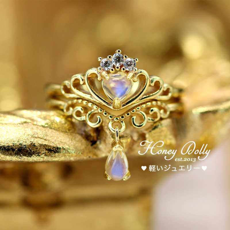 灰姑娘的南瓜车 爱心水滴月光石戒指