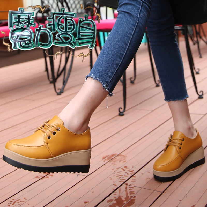 2016春秋新款厚底松糕底系带秋鞋英伦风皮鞋圆头女鞋真皮坡跟单鞋