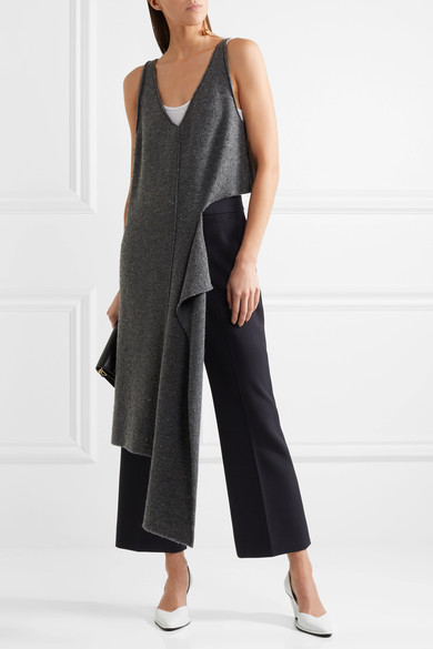Stella McCartney 这款午夜蓝色九分裤呈现酷劲十足的喇叭裤造型。羊毛珠地布中混纺着适度弹力成分,带来舒适的穿着感;利落干练的压痕则塑造笔直腿型。不妨配上无袖长款上衣,凸显这件精裁作品的现代感。