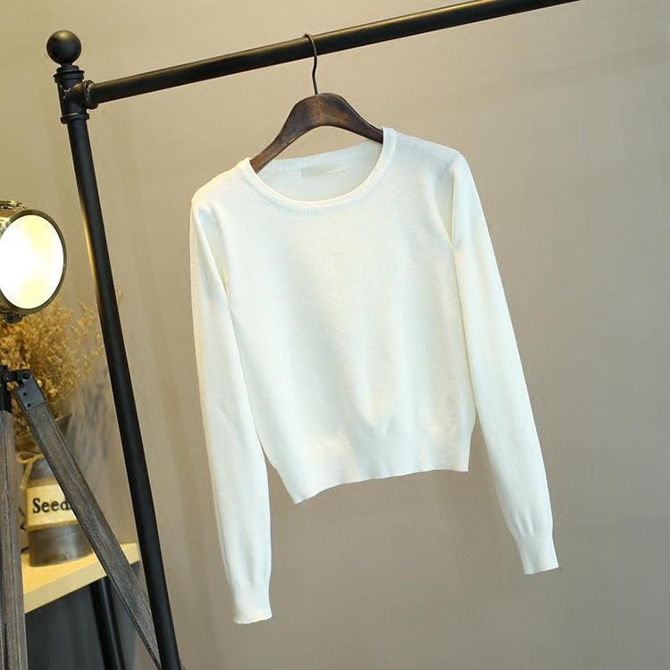 2016秋冬圆领打底衫女长袖短款韩版修身套头针织衫女毛衣女上衣潮