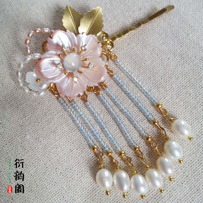 定制 暂停售 原创手工复古贝壳珍珠发簪头饰汉服配饰步摇流苏簪子发夹