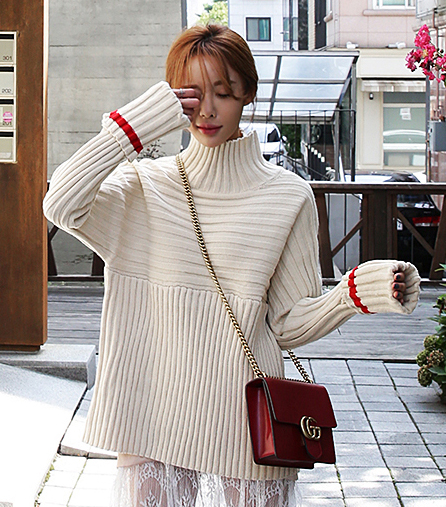 秋季 tangostyle 韩国进口 螺纹高领翻边袖舒适毛衣