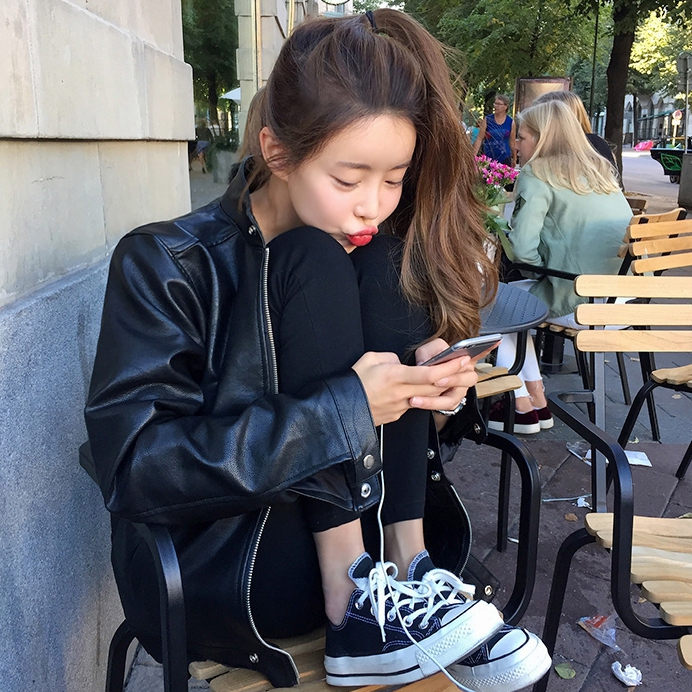 韩国直邮官网Mocobling休闲百搭韩版皮夹克外套1011