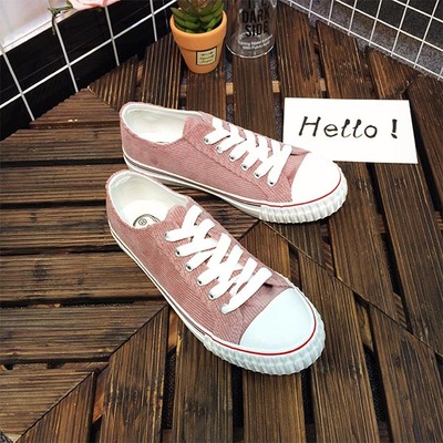 春新款帆布鞋女学生系带百搭休闲板鞋厚底灯芯绒运动鞋平跟单鞋女
