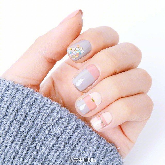 高级感十足的“奶奶灰”美甲~