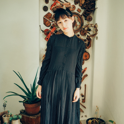 德州巴黎2017春款韩系复古甜美宽松黑色波点小立领雪纺连衣裙