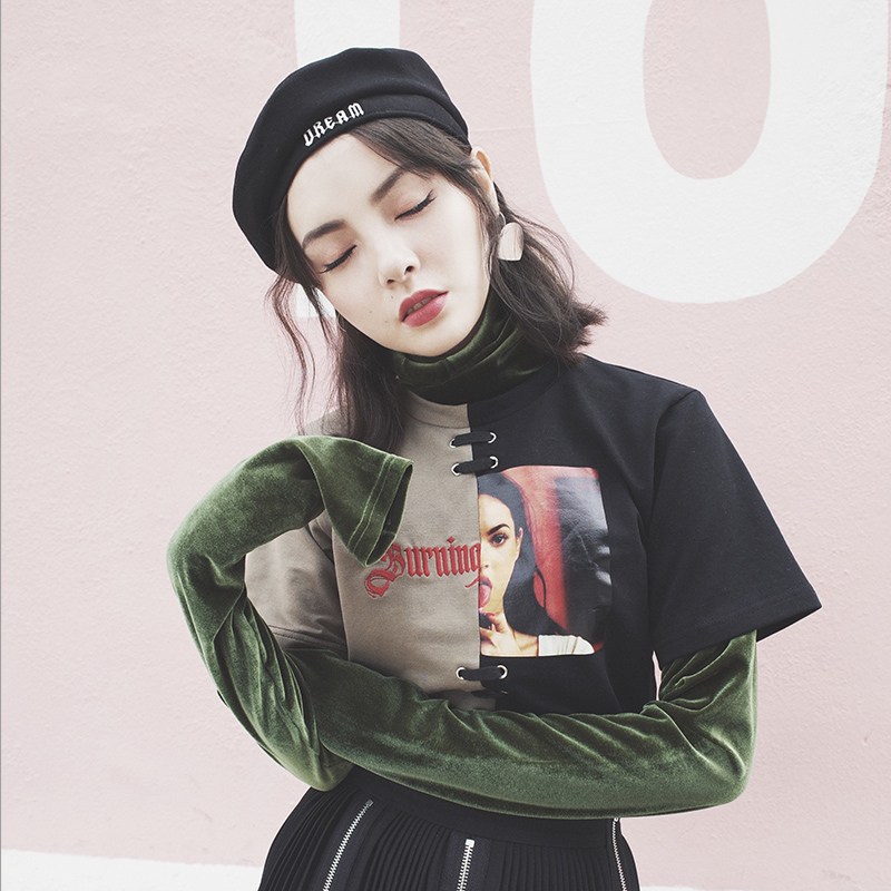 CYBERJELLY原创 超帅梅根福克斯拼接tee+丝绒内搭高领衫
