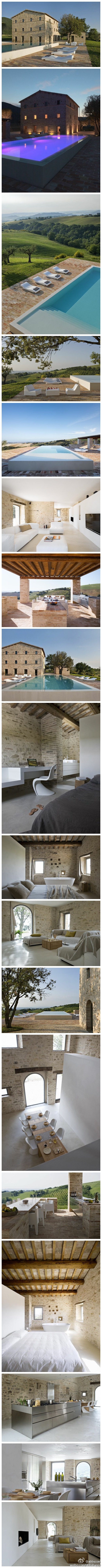 几年前,这家拥有300年历史的农舍(位于接近Treia(意大利)镇在勒意大利马尔凯大区)几乎被烧为平地,现已被完全重建。http://t.cn/zTIOSKF