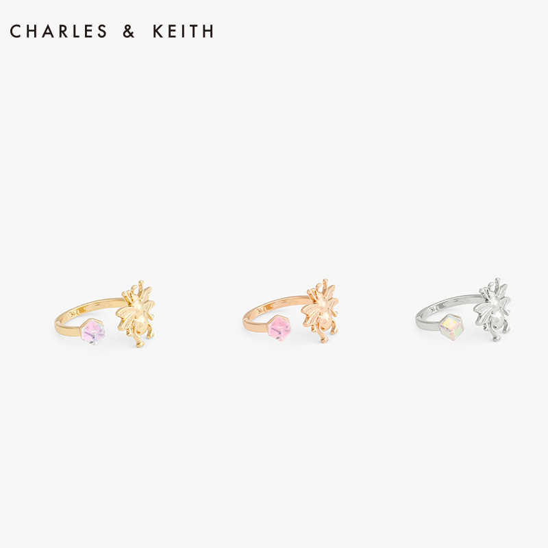 CHARLES&KEITH 戒指 CK53216 欧美风小蜜蜂金属水晶食指戒