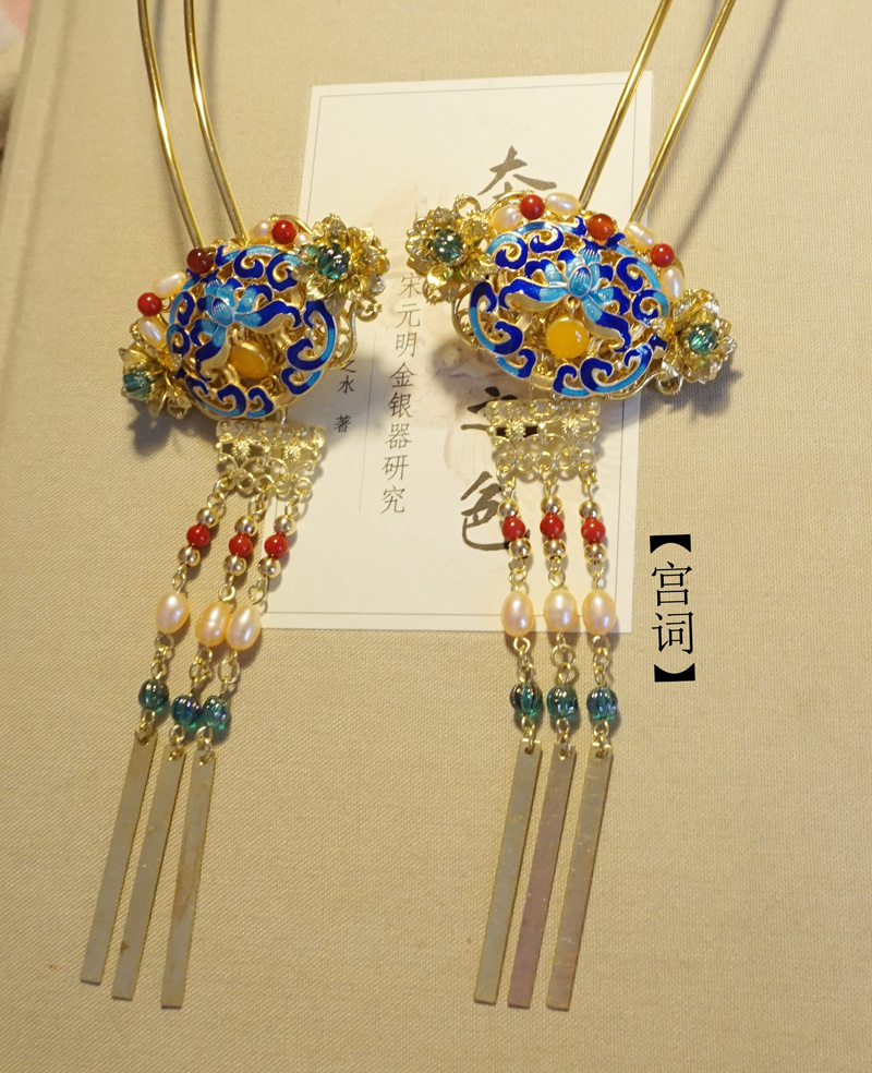 定制 【宫词】原创手工烧蓝玛瑙珍珠簪新娘发饰汉服新娘古典发饰