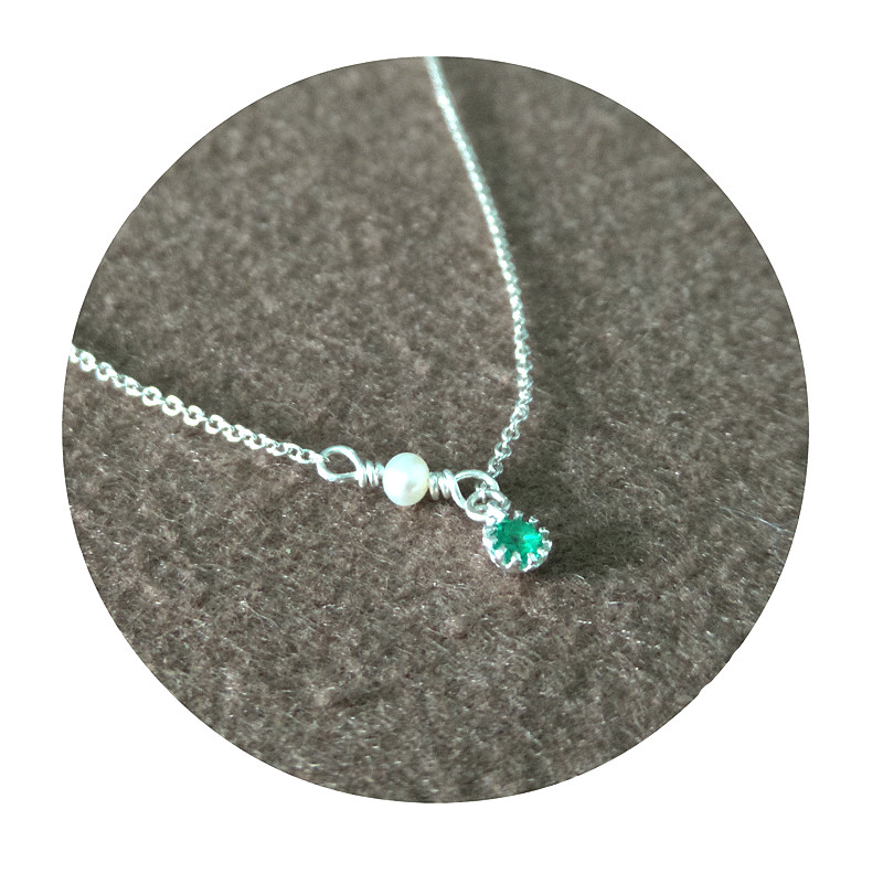 [微风绕藤]独家设计手工纯银锆石项链天然淡水珍珠极细锁骨链