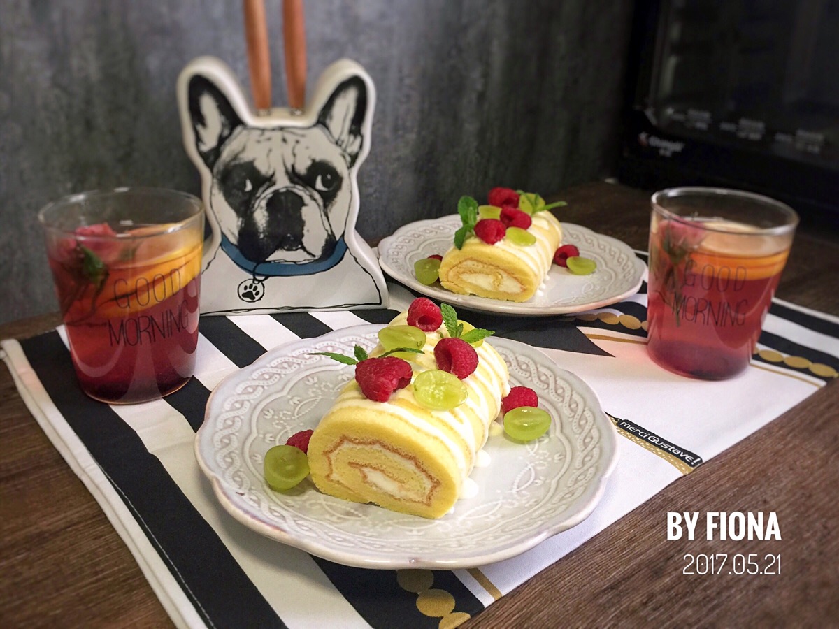 20170521早!今天的早餐格外美貌 有小雨送来的树莓和青提 特别开心[偷笑] 特意烤了小四卷来配她们 有没有特别小清新! 饮品是蜂蜜柠檬花果茶 #每日两人份早餐ByFiona# #Fiona的小厨房#