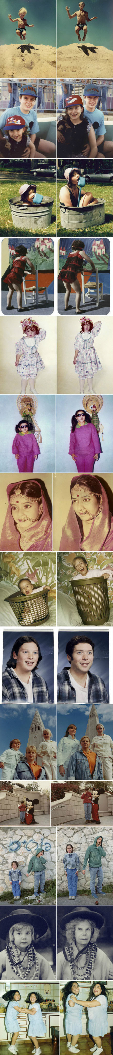 【回到未来】这些照片由阿根廷摄影师Irina Werning拍摄。她说自己喜欢老照片,“每当我踏进别人的家门,我就开始搜寻老照片。我喜欢设想如果照片中的人物再去翻拍同样的场景,他们的感受会是如何?”几年后,她将这个想法付诸实践,“我背起相机,邀请人们回到未来。