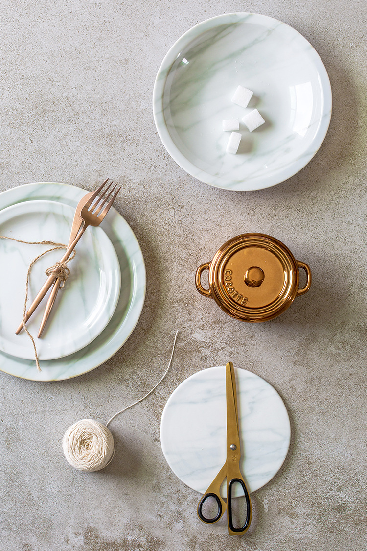 花间树里|浅思念|大理石陶瓷盘 复古牛排盘餐盘汤盘 美食拍摄利器