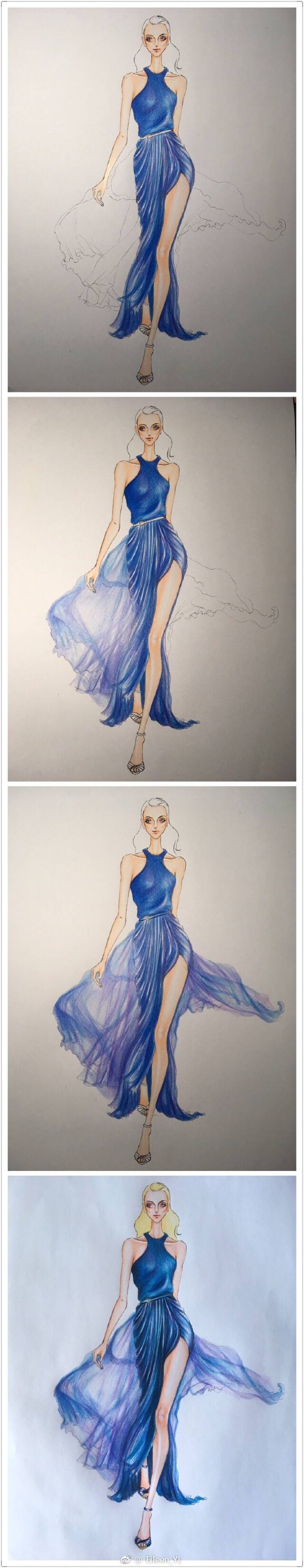彩铅时装人像三。