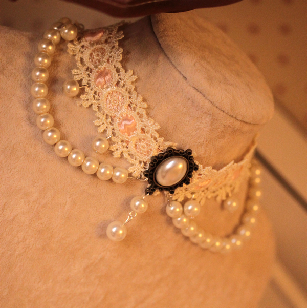 复古珍珠蕾丝 唯美裸色颈链