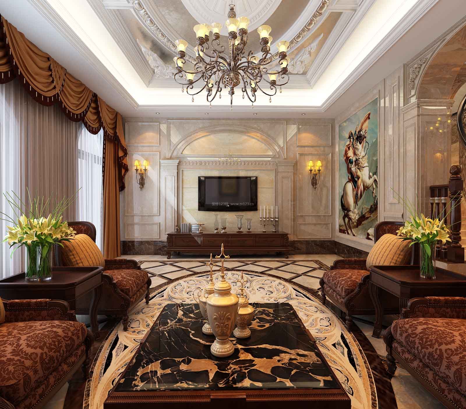 欧式别墅客厅吊顶设计装修效果图片